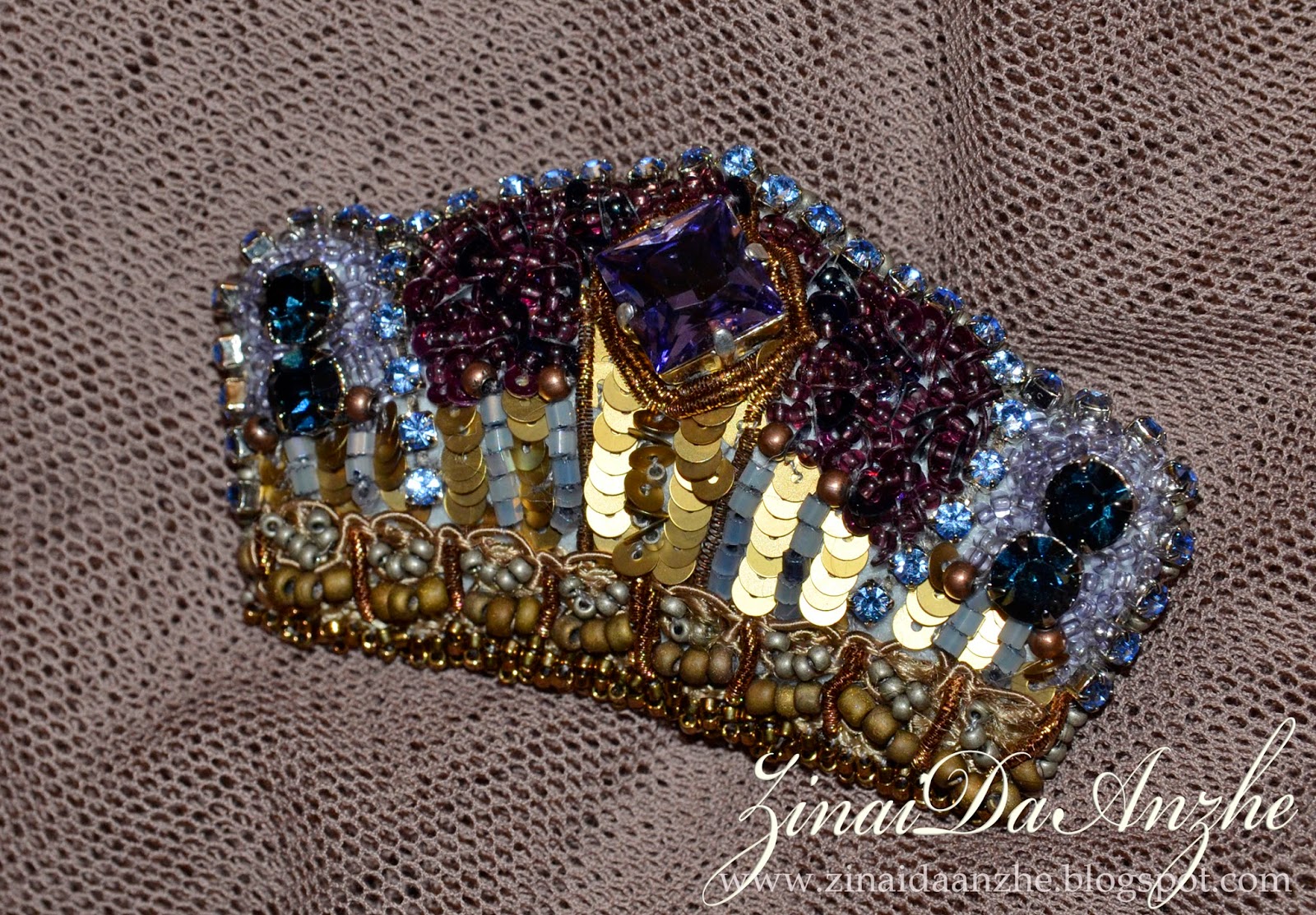 While creating this brooch, I was thinking about something sweet and nice, like "rahat lakoum" with some blue and violet colours, and gold. Here's the result - our arabian fairy tale.